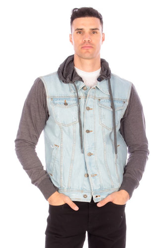 DENIM JACKET WITH HOOD - LIGHT BLUE